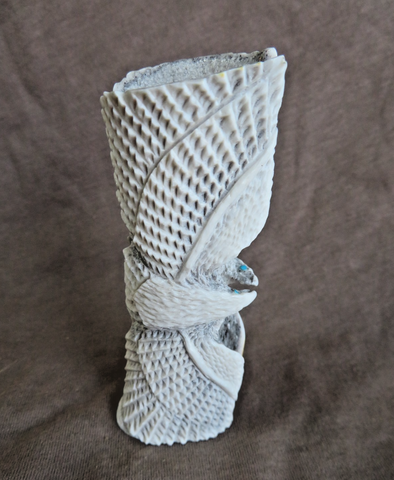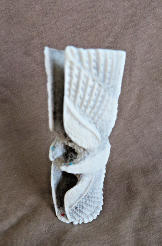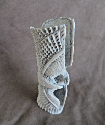 You are looking at an incredible Native Zuni made Antler Eagle Duo in flight ZUNI Fetish Carving made by Zuni artist - Todd Lowsayatee. Carving is 3.5 tall, 1.4" deep and 1.25" wide. Has turquoise eyes and turquoise and amazing etching details! This is signed TL and purchased directly from Todd at Zuni. Great opportunity to get a fantastic harder to find artist!!
