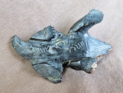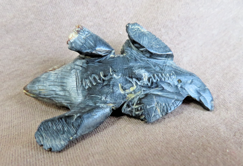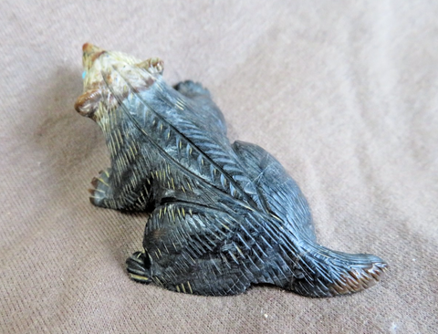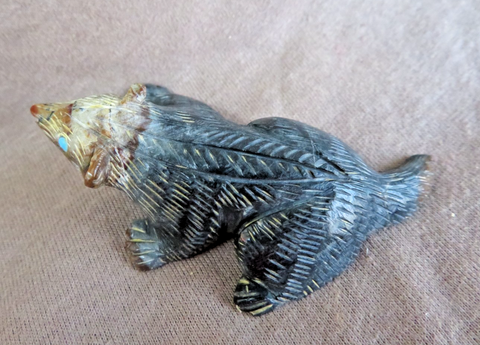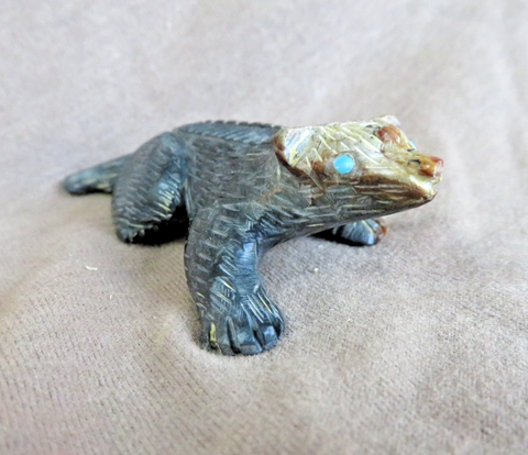 You are looking at a Native Zuni made Picasso Marble Badger ZUNI Fetish made by GREAT CARVER Lance Cheama. Carving is 2.75" long, 1.5" tall and 1.5" wide. This incredible carving features turquoise eyes and great details. Bottom is signed Lance Cheama, Zuni. Great opportunity to get a carving from one of the best known carving families.