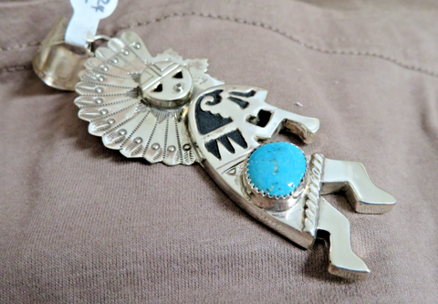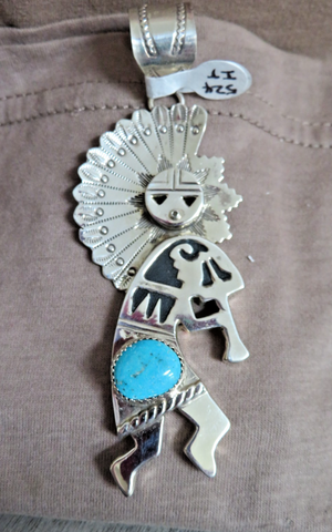 Native Navajo Turquoise & Sterling Kokopeli Kachina 3D Pendant by A Marian JP309