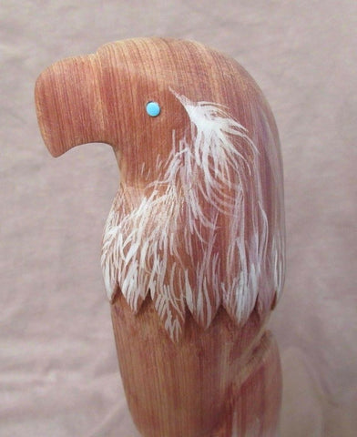 You are looking at a beautiful Collector Quality Hopi style kachina made by world known Zuni artist, Anthony Sanchez. This is the Eagle kachna. Kachina is made from one piece of cedar wood and is signed by artist. Carving is 11" tall, 2.75" deep and 2" wide. Eagle has turquoise eyes and embellishment on back. Base and feathers are hand painted. Great opportunity to get a magnificent Zuni made kachina.
