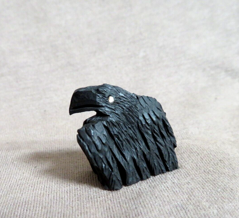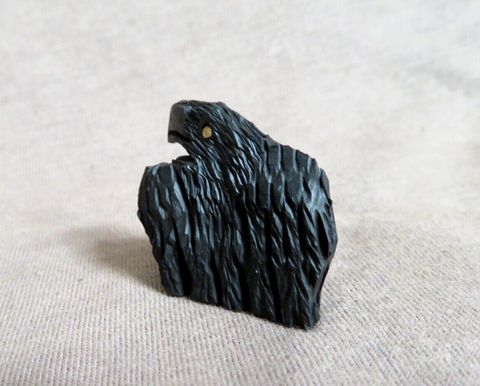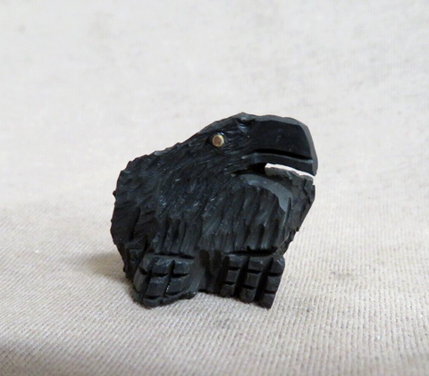 You are looking at an incredible Jet Raven ZUNI Fetish made by GREAT CARVER Rochelle Quam. Carving is 1" tall, and .5" deep and 1" wide. Features copper eyes and amazing details!! Bottom is signed RQ. Great opportunity to get a fantastic carving from a great artist in Zuni!! Direct from artist.