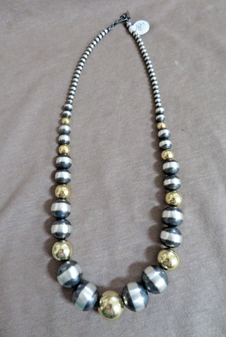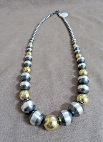 Native Navajo Sterling Silver & 18kt Overlay Navajo Pearls 18" Necklace JN526