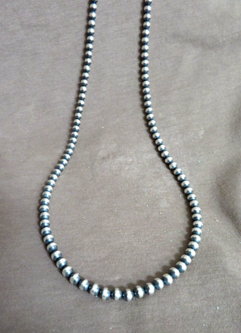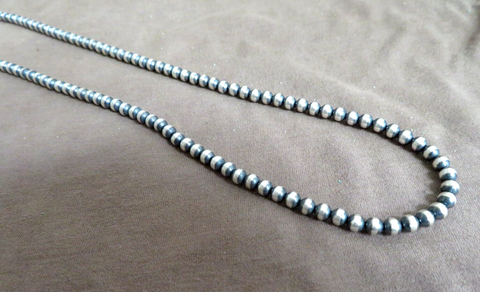 You are looking at a Classic and sensational and very elegant handcrafted Native Navajo Sterling Silver Navajo Pearls necklace. This amazing necklace measures 24" long and features hook clasp. Goes with anything