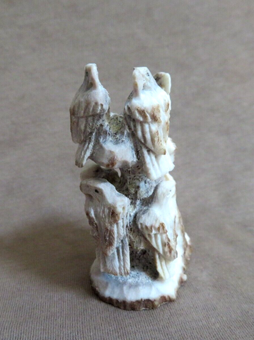 You are looking at an Amazing Native American Antler 7 Perched Eagles ZUNI Fetish carving made by Zuni artist - Lewis Malie. Carving is 2.75" Tall by 1.25" deep and 2" wide. Incredible detailing of the seven eagles! This is signed L Malie - purchased directly from Lewis. Pictures don't do it justice. Great opportunity to get a fantastic carving!!