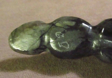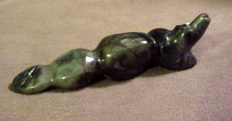 You are looking at an incredible and unique Picasso Marble Badger Zuni Fetish made by Hard to find carver Bryson Bobelu. Carving is .75" tall, 2.75" long and .5" wide. Has turquoise eyes. Bryson carves in the style of his grandfather Leekya. Bryson does not do a lot of public carvings and to find him on ebay is VERY RARE!! I am proud to call him my friend!! Take advantage of this opportunity. Bottom is signed BB. Great opportunity to get a fantastic carving with great character!!