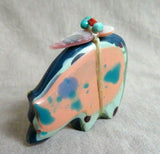 You are looking at a Multicolor Surfite (Surfboard resin) Medicine Bear with Bundle ZUNI Fetish made by Leland and Daphne Boone. Carving is 2" tall, 2.1" long and .25" wide. This incredible carving features coral eyes. and turquoise, coral and shell medicine bundle.. Bottom is unsigned but purchased from Daphne in Zuni. Gorgeous and rare stone/material